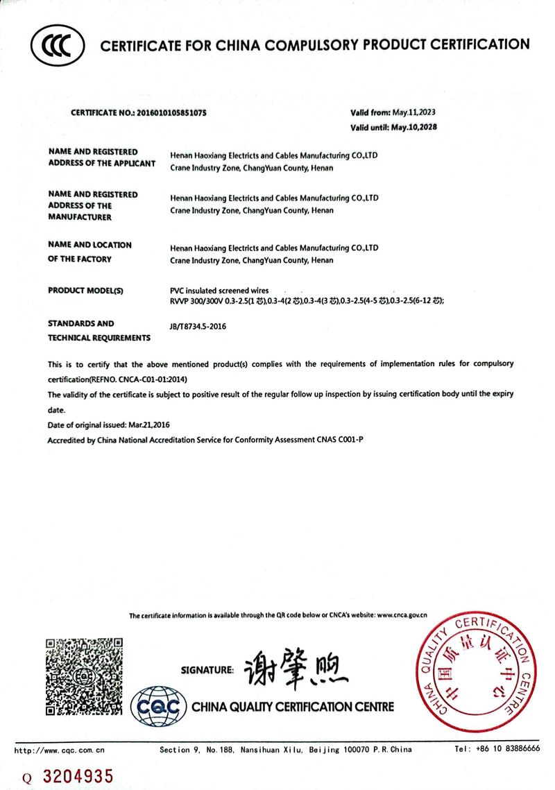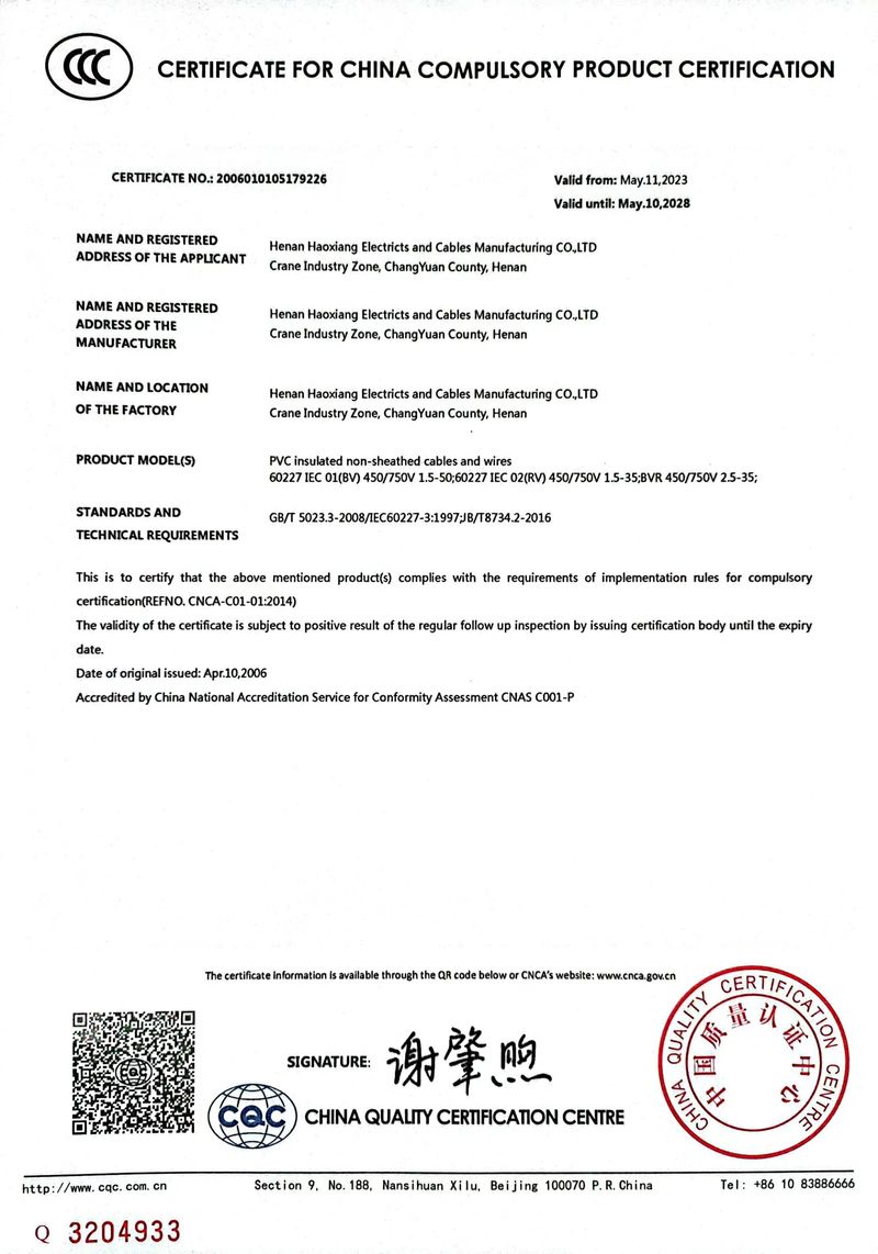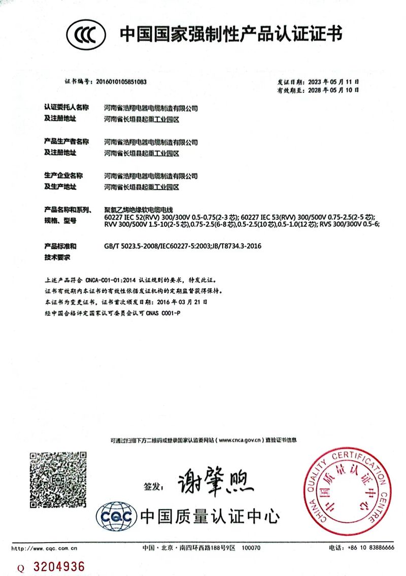 河南省浩翔電器電纜制造有限公司位于河南長垣位莊起重工業區較早通過中國質量認證中心認證的企業,創建于2004年,注冊資金壹億壹仟陸佰萬元。  浩翔電器電纜一直致力于電線電纜行業的研發、生產、銷售與服務,立志成為電纜行業